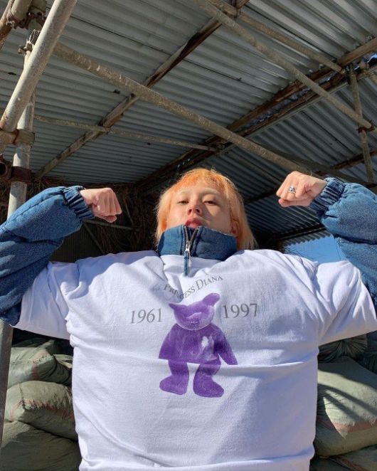 공개된 사진에는 패딩 위에 반팔 티셔츠를, 하의는 진한 자주색 트레이닝복 바지를 매치해 독특한 패션을 선보이는 던의 모습이 담겨있다. 마치 벌크업한 듯한 효과를 완성했다. 또한 오렌지 컬러의 헤어에 짧은 앞머리가 던의 귀여운 매력을 한층 부각시켜 눈길을 끈다.