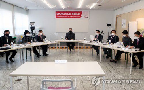 (부산=연합뉴스) 김재홍 기자 = 25일 오후 국민의힘 부산시당 당사에서 열린 당 공천관리위원회의 부산시장 보궐선거 후보 비공개 면접 현장은 선거유세 현장 못지않게 뜨거웠던 것으로 전해졌다.