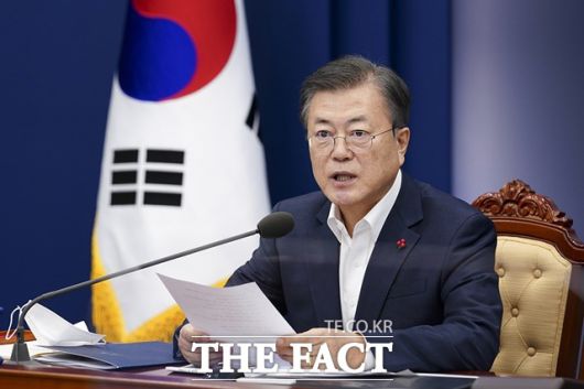 [더팩트ㅣ청와대=허주열 기자] 문재인 대통령이 25일 보건복지부·식품의약품안전처·질병관리청 업무보고를 받는 자리에서 "늦어도 11월까지는 코로나19 집단면역이 형성될 수 있을 것"이라고 말했다. 또한 정부의 방역 조치에 따라 영업이 금지되거나 제한되는 소상공인·자영업자에 대해 재정이 감당할 수 있는 일정 범위에서 손실 보상을 제도화하는 방안을 검토할 것을 당부했다.