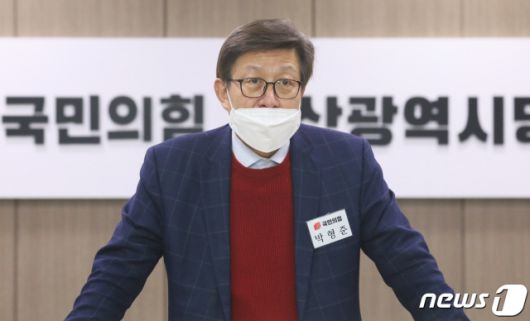 25일 오후 부산 수영구 국민의힘 부산시당에서 부산시장 보궐선거 예비후보 면접을 마친 박형준 예비후보가 발언하고 있다. 이날 박형준,박민식,이언주,이진복 등 9명이 예비후보가 면접 심사를 받는다/사진=뉴스1 |