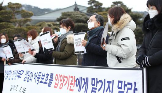 문 대통령은 지난 18일 청와대에서 열린 신년 기자회견에서 양부모 학대로 숨진 ‘정인이 사건’과 관련해서 “입양 자체는 위축시키지 않고 입양 아동을 보호할 수 있어야 한다”고 했다. 그러면서 “입양부모의 마음이 변할 수 있기 때문에 일정 기간 안에 입양을 취소하든지, 입양하려는 마음은 강하지만 아이와 맞지 않으면 입양 아동을 바꾸는 등 대책이 필요하다”고 했다.