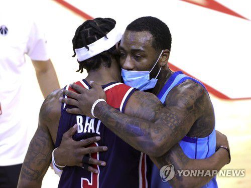 경기 종료 후 워싱턴 시절 동료 브래들리 빌(왼쪽)과 포옹하는 존 월. |