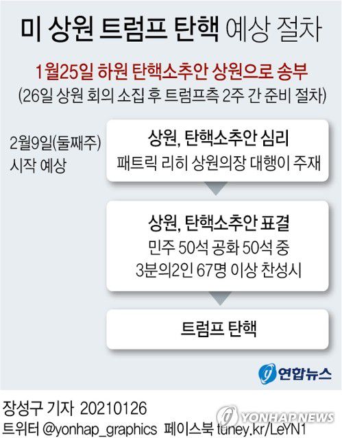 민주당의 척 슈머 상원 원내대표는 "동료 의원들에게 말하고 싶은 것은 간단하다. 탄핵 심판이 진행될 것이라는 점"이라고 밝혔다.