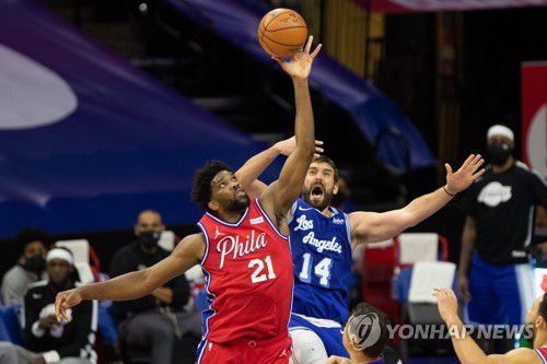 필라델피아는 28일(한국시간) 미국 펜실베이니아주 필라델피아의 웰스 파고 센터에서 열린 2020-2021 NBA 정규리그 홈 경기에서 토비아스 해리스의 결승포에 힘입어 LA 레이커스를 107-106으로 꺾었다.