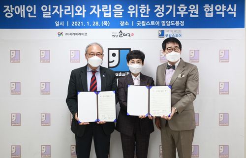 ▲ 개그맨 팽현숙·최양락 부부가 밀알복지재단에서 운영하는 장애인 직업재활 시설 굿윌스토어에 매달 1회씩 '팽현숙의 옛날 순대국' 등 식료품을 기부하기로 했다. 재단은 이를 판매한 수익금을 굿윌스토어에서 일하는 장애인 근로자들의 급여로 쓸 계획이다. (서울=연합뉴스)