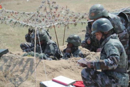 2017년 7월 시진핑 중국 국가주석(가운데)이 네이멍구 주르허 훈련기지에서 인민해방군 90주년 열병식에서 전투복을 입고 군대를 사열하고 있다. [AP] |