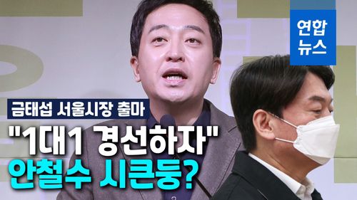 (서울=연합뉴스) 서울시장 보궐선거 출마를 선언한 금태섭 전 의원이 국민의당 안철수 대표에게 '1대 1 경선'을 제안했습니다.
