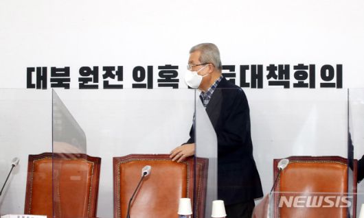 김종인 국민의힘비대위원장이 31일 오후 국회에서 대북 원전 의혹 긴급 대책회의에 참석하고 있다. /사진=뉴시스. |