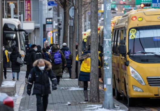 18일 서울 송파구의 한 학원가 인근에서 버스에서 내린 학생들이 학원으로 향하고 있다. 연합뉴스 |