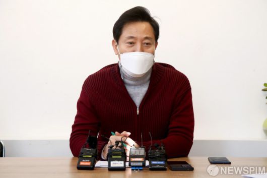 [서울=뉴스핌] 국회사진취재단 = 서울시장 보궐선거에 출마를 선언한 오세훈 국민의힘 예비후보가 2일 서울 종로구 아시테지 한국본부에서 공연연극계 인사들과 간담회를 하며 인사말을 하고 있다. 2021.02.02 photo@newspim.com 저작권자(c) 글로벌리더의 지름길 종합뉴스통신사 뉴스핌(Newspim), 무단 전재-재배포 금지