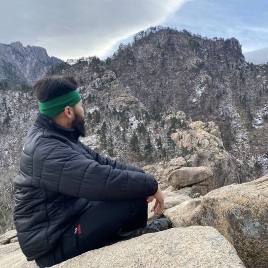 노홍철은 2일 자신의 인스타그램에 산 정상에서 앉아 있는 사진을 올렸다.