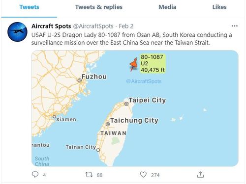 주한미군 소속 U-2S가 미중 갈등 해역인 대만해협 인근 상공에 투입돼 언론이나 민간 항공기 추적 사이트에 노출된 것만 작년 12월 이후 이번이 세 번째다.