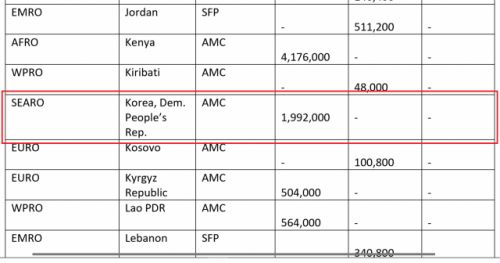 북한이 받는 아스트라제네카 199만2,000회분은 1명 당 2회 접종해야 하기 때문에 99만1,000명을 접종할 수 있는 규모다. 북한은 전체 공급분 35~40%는 1분기, 60~65%는 2분기에 공급받을 예정이다.
