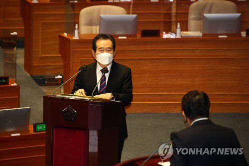 정 총리는 이날 국회 대정부질문에서 국민의힘 권성동 의원의 질의에 "손실보상을 제도화하는 노력에는 시간이 좀 걸리고, 3차 (코로나19) 유행이 지속되고 있다"며 이같이 밝혔다.
