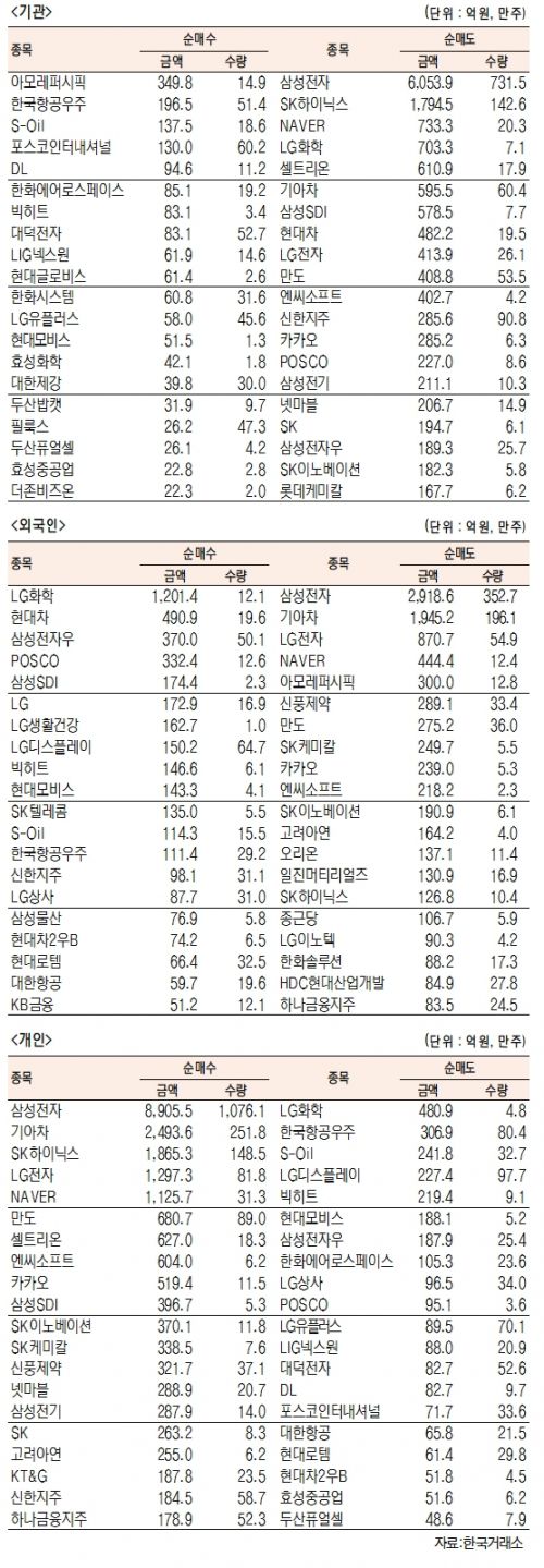 [표]유가증권 기관·외국인·개인 순매수·도 상위종목( 2월 4일-최종치)