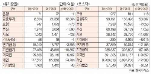 [표]유가증권 코스닥 투자주체별 매매동향 ( 2월 4일-최종치)