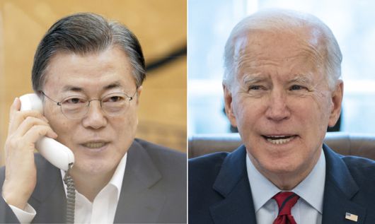 청와대와 백악관은 이날 양국 정상이 32분간 전화통화에서 이같이 논의했다고 밝혔다. 양국 정상 통화는 이날 오전 8시25분부터 57분까지 이뤄졌다. 바이든 대통령 취임 후 14일 만의 양국 정상 간 첫 통화다.