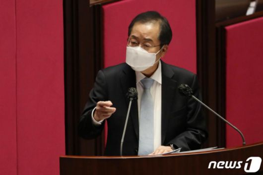 (서울=뉴스1) 신웅수 기자 = 홍준표 무소속 의원이 4일 서울 여의도 국회에서 열린 제348회 국회(임시회) 제4차 본회의에서 정치·외교·통일·안보에 관한 대정부질문을 하고 있다. 2021.2.4/뉴스1 |