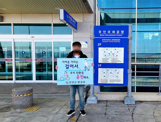 무안군이 미세먼지 줄이기 실천 1인 캠페인 활동을 실시했다. (사진=무안군 제공) |