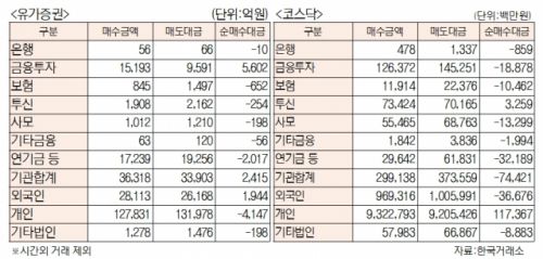 [표]유가증권 코스닥 투자주체별 매매동향(2월 5일)