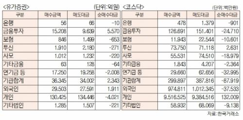 [표]유가증권 코스닥 투자주체별 매매동향( 2월 5일-최종치)