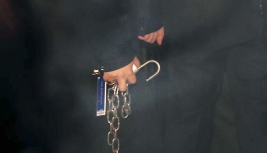 국민의힘 의원들이 5일 법관 탄핵과 관련해 서울 서초구 대법원 청사를 항의 방문하자 대법원 보안 직원들이 쇠사슬로 중앙 출입구를 봉쇄하려 하고 있다. 대법원은 국민의힘 의원들이 대법원 청사로 들어가려 하자 한때 이 쇠사슬로 출입문을 봉쇄하기도 했다./ 장련성 기자 |