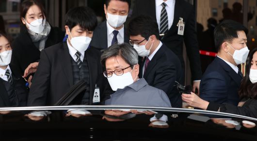 김명수 대법원장이 5일 오후 서울 서초구 대법원을 나서고 있다. /연합뉴스 |