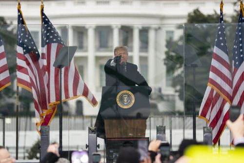 도널드 트럼프 전 미국 대통령이 지난달 6일(현지시간) 의회의 조 바이든 당선인 최종 승인을 막기 위해 모인 자신의 지지자들 앞에서 발언하고 있다. 워싱턴D.C./AP연합뉴스 |
