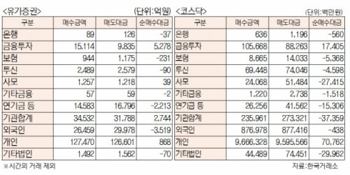 [표]유가증권 코스닥 투자주체별 매매동향( 2월 8일)