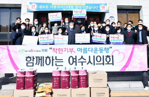 (여수=연합뉴스) 형민우 기자 = 전남 여수시의회는 재난지원금으로 '착한 기부 캠페인'에 나섰다고 8일 밝혔다.