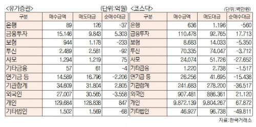 [표]유가증권 코스닥 투자주체별 매매동향( 2월 8일-최종치)