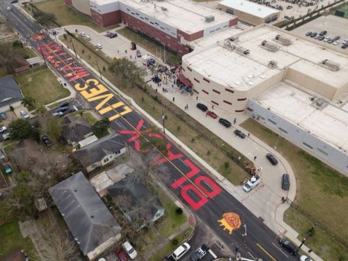 플로이드의 모교 앞 도로에 새겨진 '흑인 목숨도 소중하다' 문구 |