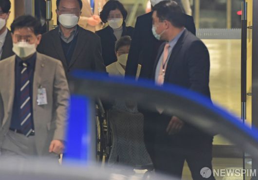 [서울=뉴스핌] 백인혁 기자 = 신종 코로나바이러스 감염증(코로나19) 확진자 밀접 접촉자로 분류된 뒤 병원에서 격리를 마치고 머물던 박근혜 전 대통령이 9일 오후 서울 서초구 서울성모병원에서 퇴원하고 있다. 2021.02.09 dlsgur9757@newspim.com