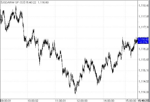 서울외국환중개에 따르면 원·달러 환율은 전 거래일 종가(1119.60원) 대비 3원(0.27%) 내린 1116.60원에 마감했다. 이날 환율은 전 거래일 종가 대비 0.6원 하락한 1119.10원 출발에서 시작해 장중 최저 1113원대를 기록한 뒤 점차 하락폭을 축소했다.
