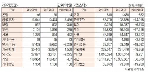 [표]유가증권 코스닥 투자주체별 매매동향(2월 9일-최종치)