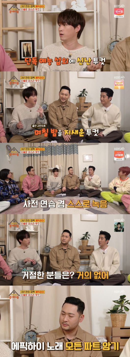 이날 타블로는 "셋이 같이 나오는 건 17년 만이다"라며 말문을 열었고, 투컷은 "'강심장' 이후 처음 아니냐"라며 거들었다.