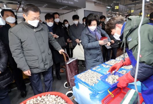 문 대통령 내외가 이날 구입한 젓갈 100여 세트 등은 인천시 만석동 쪽방촌 주민들에게 명절 선물로 전달할 계획이다.