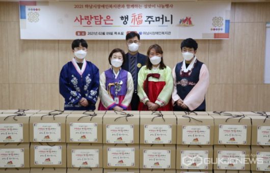 (하남=국제뉴스) 강정훈 기자 = 하남시장애인복지관은 지난 9일 설 명절을 맞아 '사랑담은 행복 주머니' 행사로 재가 장애인 100가정에 명절선물 13종 세트(식료품 및 생필품, 건강식품 외)와 새해인사를 담은 편지와 영상을 제작하여 전달하였다.
