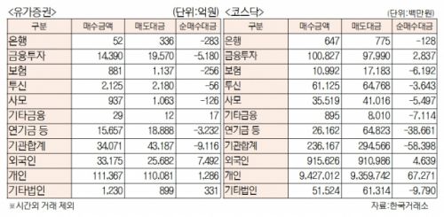 [표]유가증권 코스닥 투자주체별 매매동향(2월 10일)
