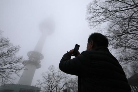 수도권을 비롯한 전국 곳곳에서 고농도 미세먼지가 한때 매우 나쁨 수준까지 치솟은 7일, 한 시민이 흐릿한 남산 서울타워를 휴대폰으로 촬영하고 있다. 뉴스1 |