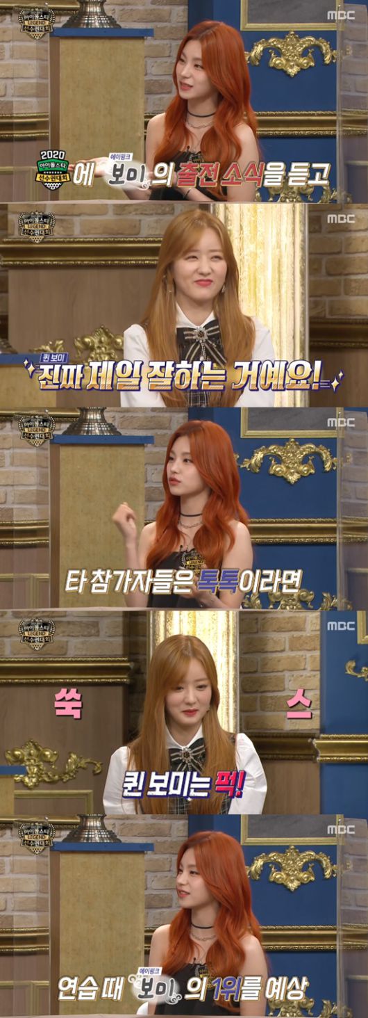 있지 예지는 "참가자들의 투구 영상을 보면서 공부했는데, 윤보미 선배님이 제일 잘하시더라. 소리가 다른 분들이 '톡톡'이라면 윤보미 선배님은 '퍽'이었다. 연습 때부터 1위를 예상했다"고 뒷이야기를 전했다.