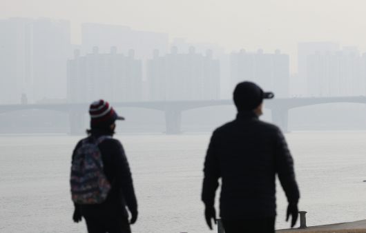 설 연휴 첫날인 11일 오전 서울 마포대교 인근에서 바라본 한강 원효대교와 용산 일대가 안개와 미세먼지 등으로 뿌옇게 보인다. [연합] |