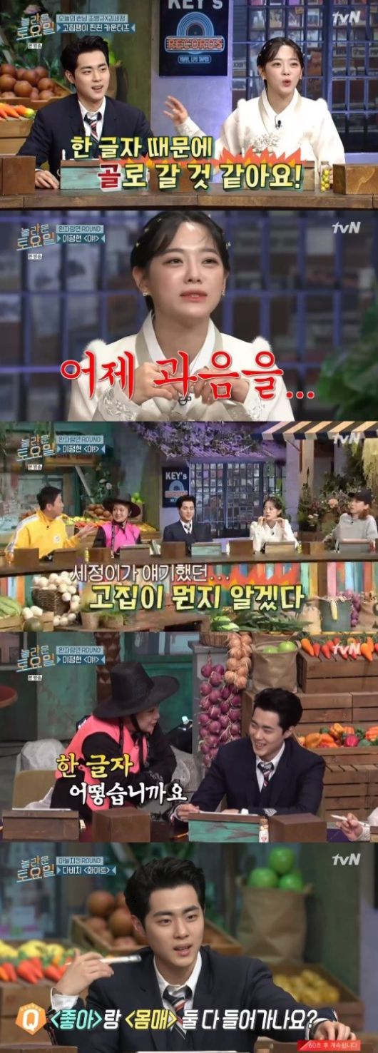 13일 방송된 tvN ‘놀라운 토요일-도레미마켓’에서는 이정현, 다비치 받쓰에 도전한 김세정, 조병규의 모습이 그려졌다.