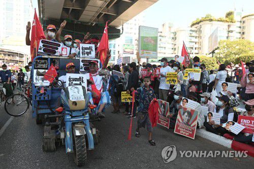 (하노이=연합뉴스) 민영규 특파원 = 미얀마 군부 쿠데타를 규탄하는 대규모 거리 시위가 13일에도 곳곳에서 벌어지는 등 시민 불복종 운동이 8일째 이어졌다.