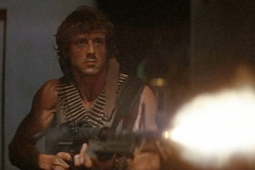 온몸에 탄띠를 둘러멘 채 M60 기관총을 든 근육질의 남자, ‘람보’.