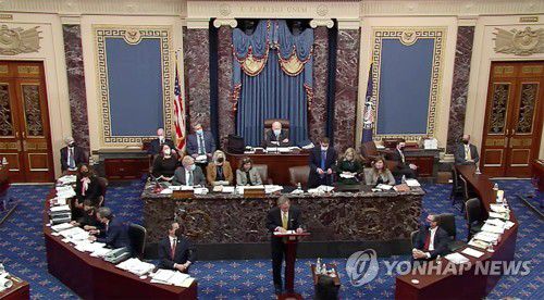 (워싱턴=연합뉴스) 임주영 특파원 = 미국 상원이 도널드 트럼프 전 대통령에 대한 탄핵심판 닷새째인 13일(현지시간) 최종 변론 절차에 들어갔다.