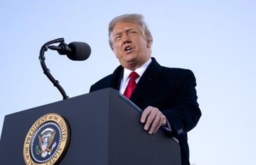 퇴임하는 도널드 트럼프 미국 대통령이 지난달 20일(현지시간) 매릴랜드주 앤드루스 공군기지에서 열린 환송 행사에서 고별 연설을 하고 있다. 앤드루스 공군기지 AFP=연합뉴스 |