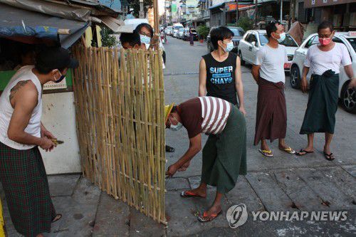 미얀마 시민들, 反쿠데타 인사 체포 막기 위해 펜스 설치 |