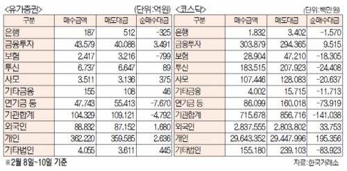 [표]주간 유가증권·코스닥 투자주체별 매매동향(2월 8~10일)