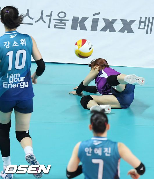 [OSEN=장충, 민경훈 기자] 14일 오후 서울 장충체육관에서 도드람 2020-2021 V리그 프로배구 여자부 GS칼텍스와 KGC인삼공사 경기가 열렸다. 1세트 GS칼텍스 한다혜가 볼을 향해 몸을 날리고 있다./ rumi@osen.co.kr